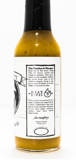 The peaches and mangos stand out in this sauce, along with the savory onions and Anaheim peppers. This sauce would not be complete without the sweet fruity heat of the Carolina reapers. Great to use on a variety of dishes. It is also delightful mixed into dips.